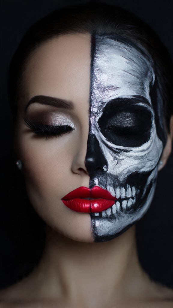 3. Half-Skull Glam – Halloween Makeup