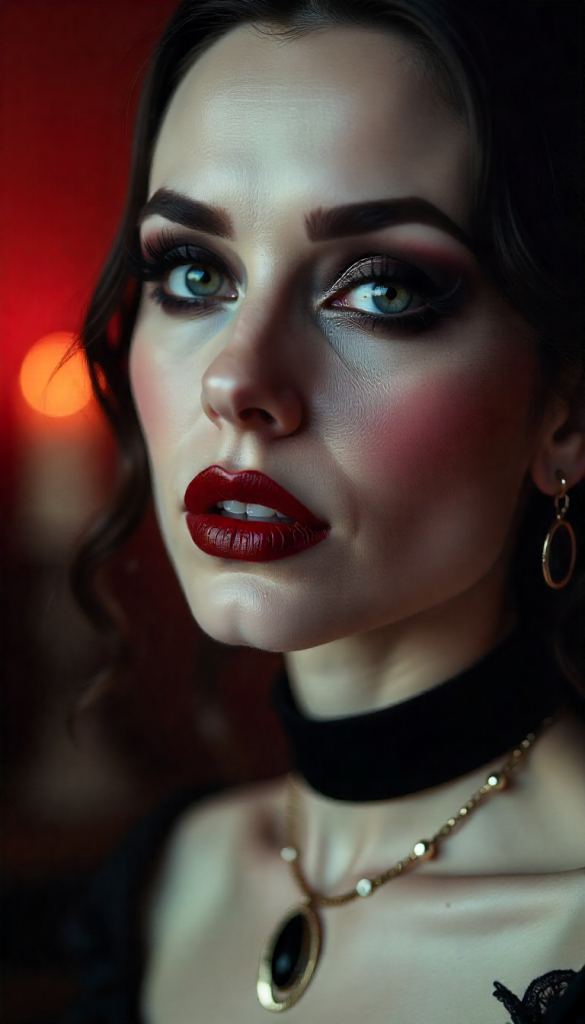 For the eyes, blend deep burgundy and black shadows for a smoky finish, and line your eyes with jet-black eyeliner. A pair of dramatic lashes will add instant drama. Finish with a bold, blood-red lip — and if you’re feeling daring, dab a bit of fake blood at the corners of your mouth. Pair it with slicked-back hair and a choker, and you’ve got a vampy look that’s equal parts scary and stunning.