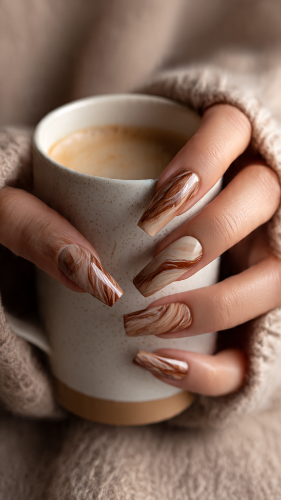 Blend creamy beige, caramel, and brown together for a soft marble effect.
