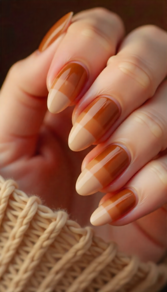 Smooth, sweet, and effortlessly chic — burnt caramel ombre nails are a must.