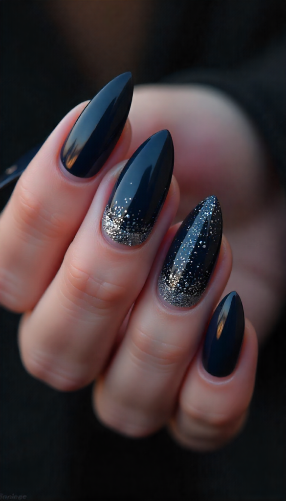 When you’re in the mood for something a little mysterious, go for navy or black with a touch of glitter.