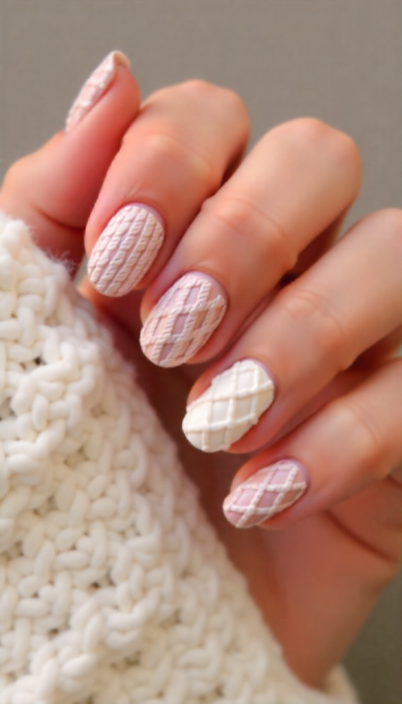 Think soft beige, ivory, or dusty rose shades with little 3D knit designs.