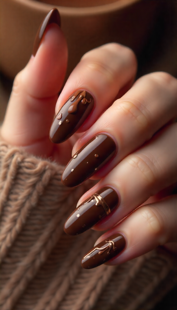 If you love warm neutrals, you’ll fall head over heels for chocolate nails.