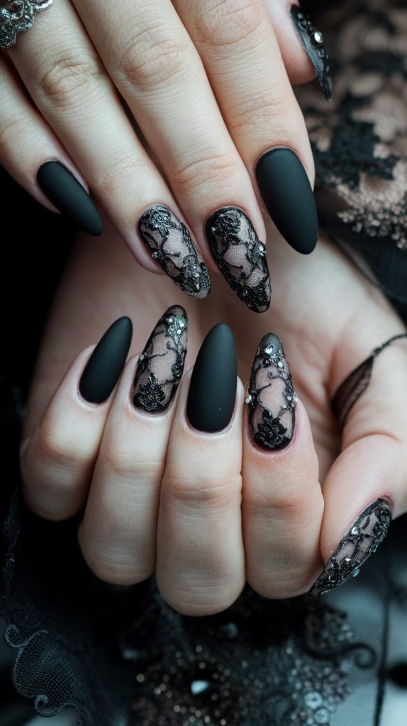 4. Gothic Black Lace NailsHalloween Nail Ideas 2025