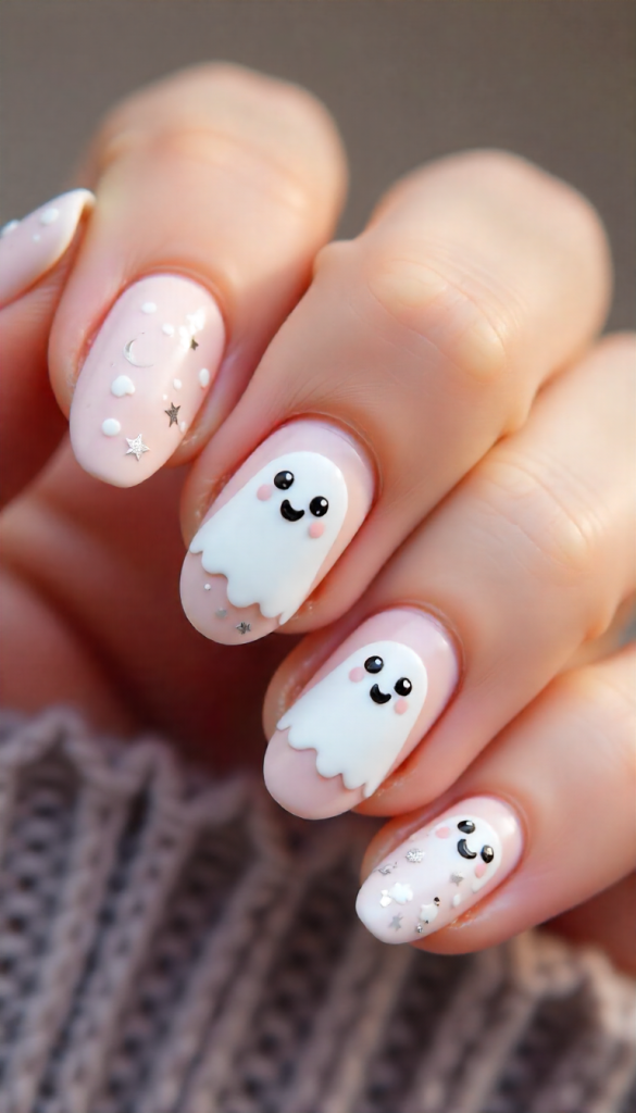7. Cute Ghost NailsHalloween Nail Ideas 2025