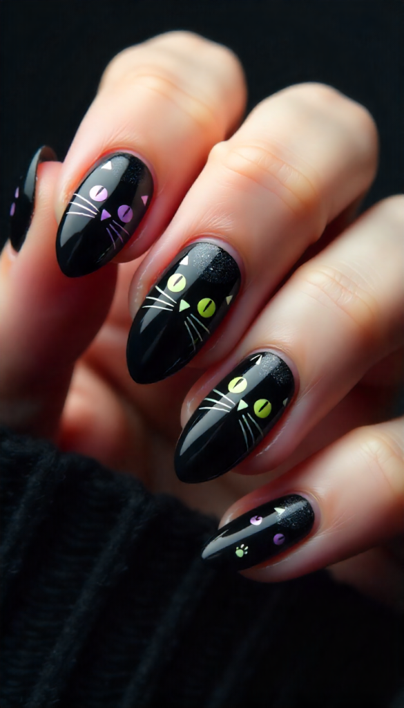 Elegant yet eerie, Black Cat Nails blend spooky sophistication with timeless Halloween style, making them a must-have for Halloween Nail Ideas 2025.