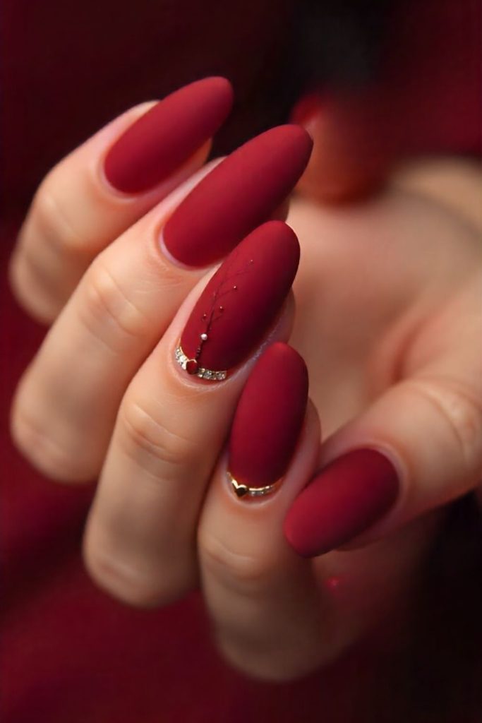Rich matte red gives the feeling of cozy luxury — like wrapping paper come to life. Add subtle rhinestones or gold outlines for an extra festive glow.