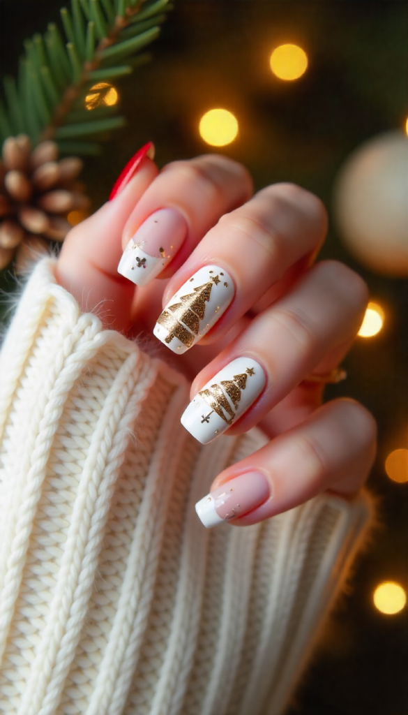 Keep it simple and elegant with alternating red and green French tips. This minimalist style adds a holiday touch without going overboard.