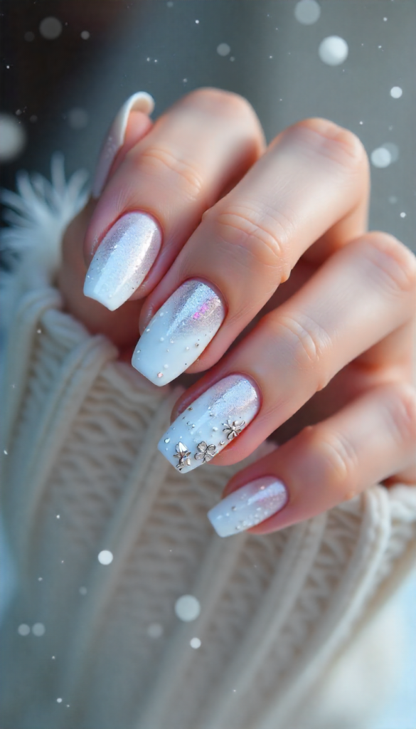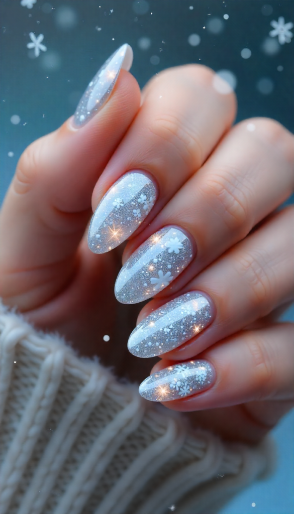 Best for: Square or almond nails — perfect for showcasing detailed snowflake art.