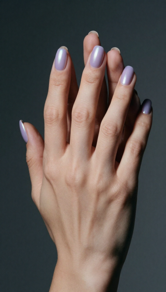 Lavender pearl chrome nails feature a soft pastel purple base infused with a pearly metallic overlay. The finish is delicate rather than bold, offering a refined shimmer that catches light subtly instead of overpowering. This design emphasizes softness, elegance, and luxury minimalism, making it ideal for clients who want a clean yet elevated manicure.