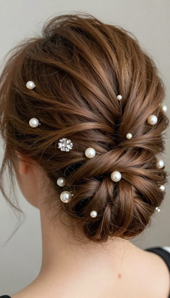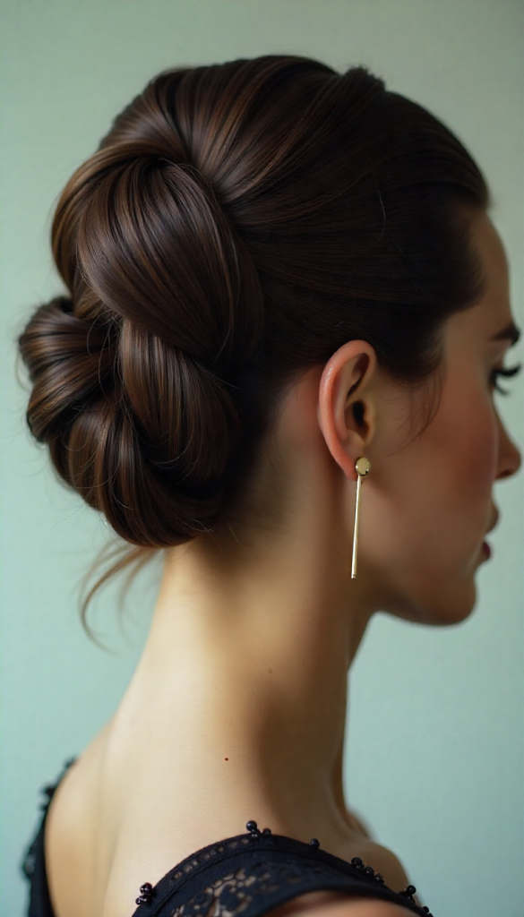 This glamorous updo is perfect for formal occasions, cocktail parties, and events where you want your hairstyle to make a statement.