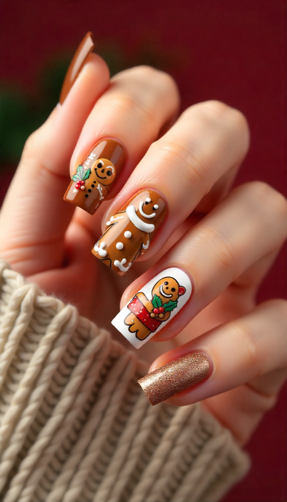 8. Gingerbread Man Christmas Cartoon Characters Nails