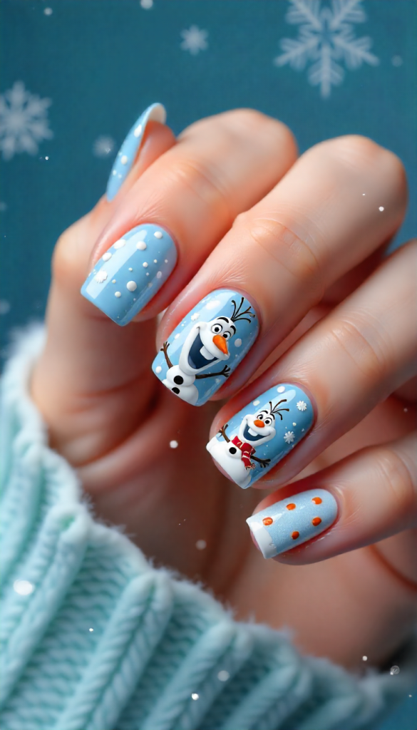 6. Olaf Christmas Cartoon Characters Nails
