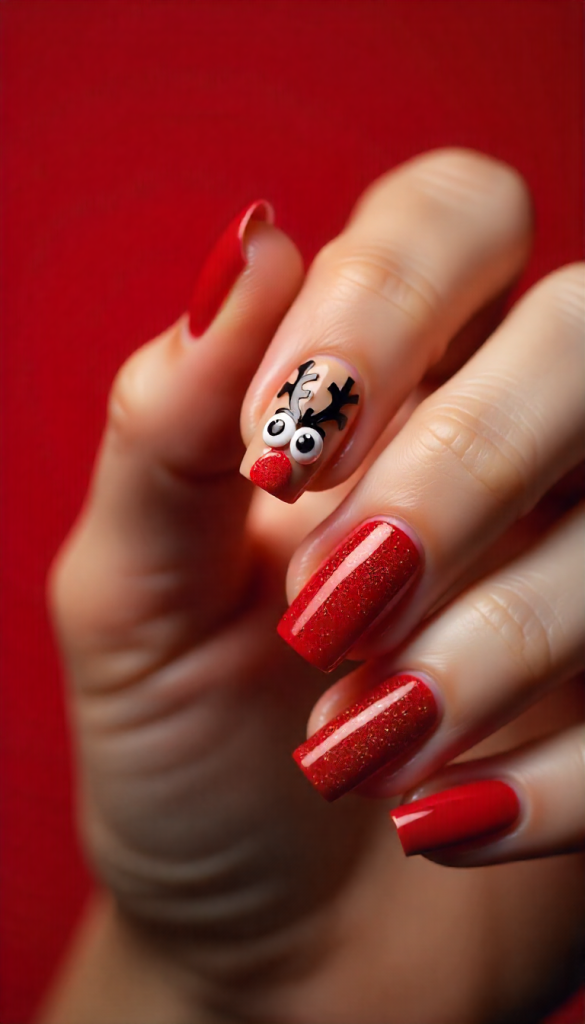 2. Rudolph the Red-Nosed Reindeer Christmas Cartoon Characters Nails