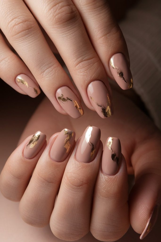 3. Nude Nails with Gold Foil Accents
