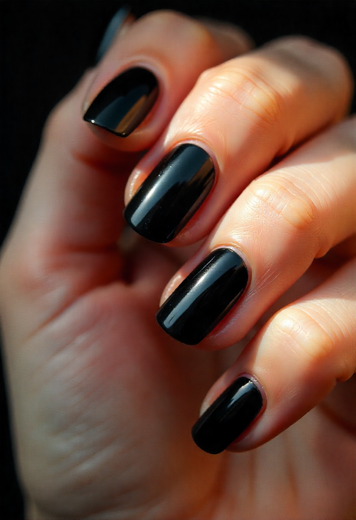 4. Black Gloss Nails with Subtle Shimmer