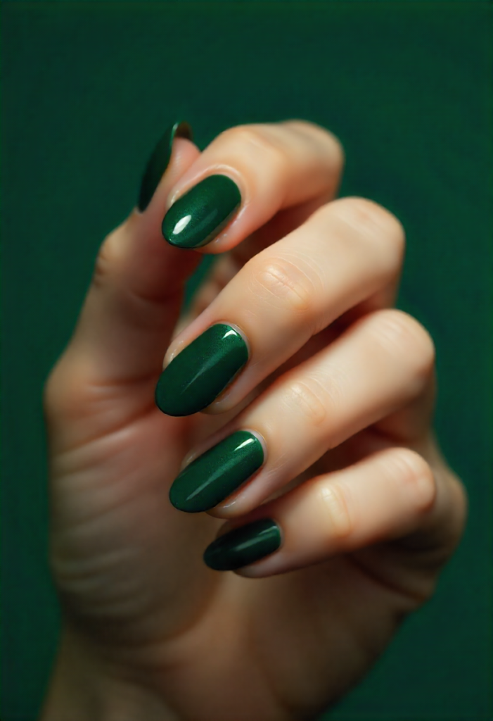 Deep green nails with a velvet or cat-eye finish look rich and glamorous. The texture adds depth and movement.