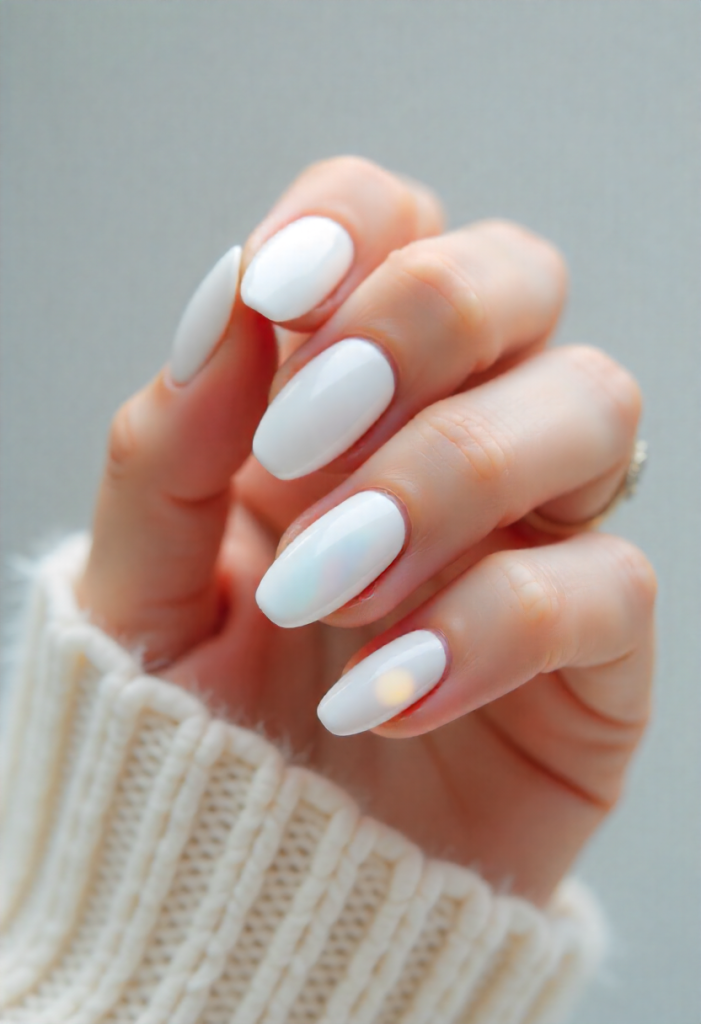 Milky white chrome nails are the definition of winter elegance. The soft white base paired with a pearl-like chrome finish creates a clean yet luxurious look.