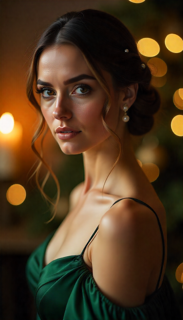 Pearl accessories are the real magic here—they instantly transform a simple bun into a holiday-ready masterpiece. And because pearls reflect light softly, they pair beautifully with warm Christmas lighting.