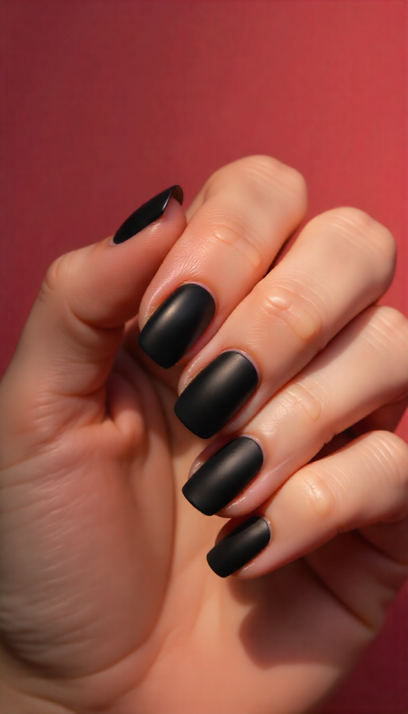 This design plays with contrasting textures to create a chic, modern manicure. The nails are painted matte black, giving a soft, velvety finish, while the tips are coated in high-gloss black polish. This subtle contrast draws attention to the nail shape and creates a refined yet edgy effect. Ideal for everyday glam or professional settings, these nails are understated but undeniably stylish. The interplay of matte and gloss adds sophistication, making it a favorite for minimalistic glam lovers.