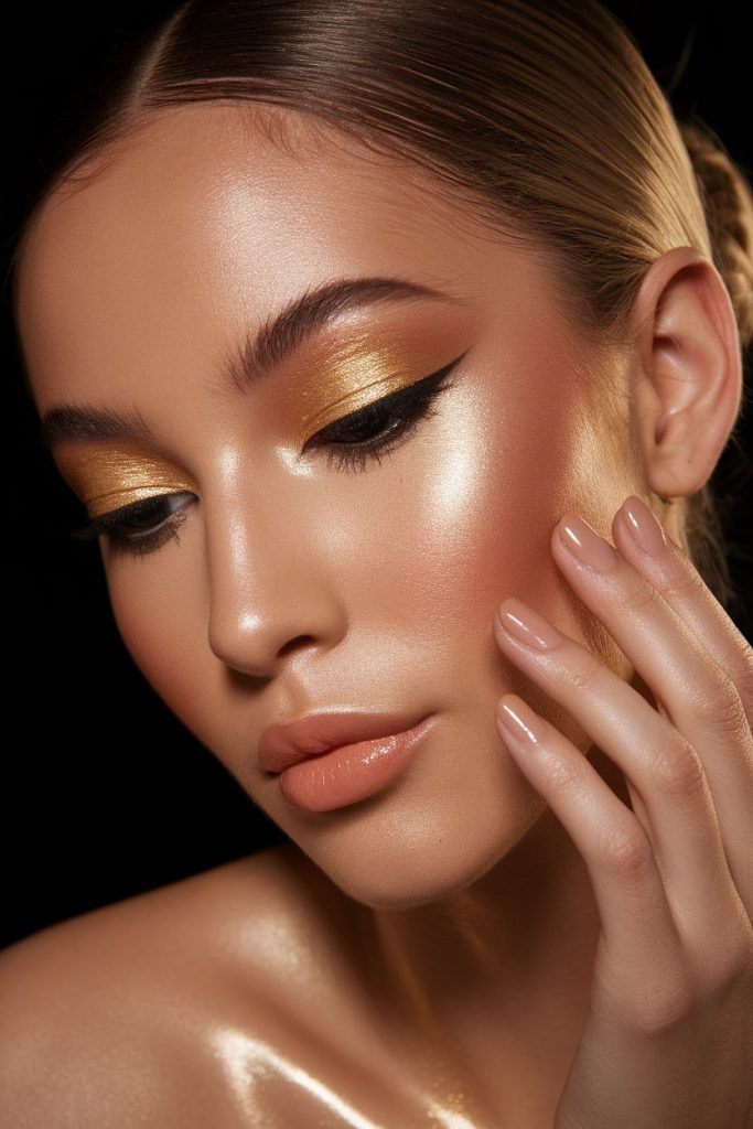 Gold foil or metallic eyeshadow screams luxury. It reflects light beautifully and makes your eyes the star of the night.