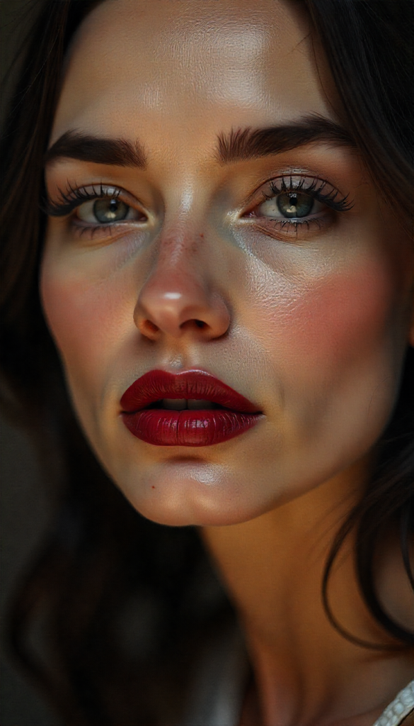 Choose berry, wine, or red gloss and keep your eyes luminous with neutral shimmer shades. Add mascara and soft liner for definition.