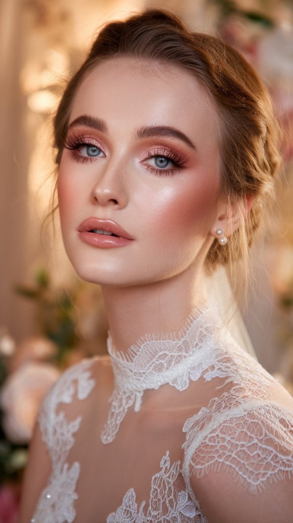 If you dream of a romantic bridal look, this wedding makeup for blue eyes brings the perfect blend of softness and sophistication.