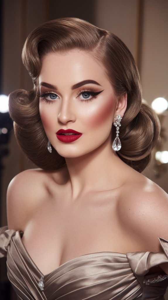 Pair it with a porcelain complexion, soft pink blush, and glossy lips with a hint of sparkle.