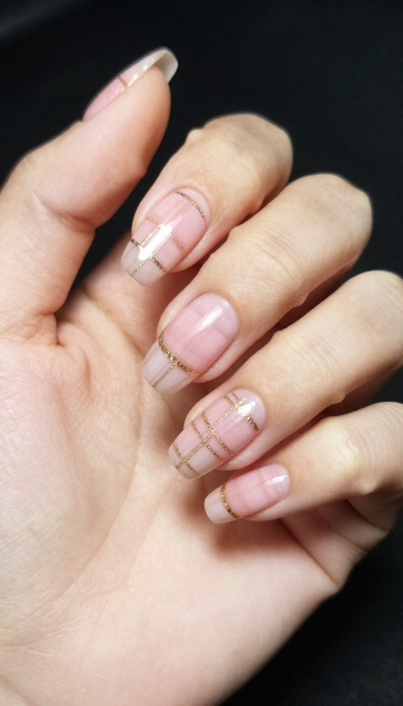 6. Pink Plaid Nails with Subtle Metallic Accents